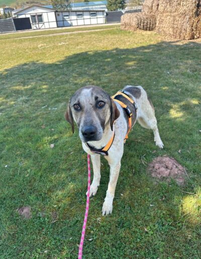 Darius wurde Mitte Mai 2023 geboren und stammt ursprünglich aus Rumänien. Er wurde als Welpe zusammen mit seiner Mutter und seinen Geschwistern gefunden und von unserer Pflegestelle liebevoll großgezogen. Jetzt sucht er ein endgültiges Zuhause, in dem er sich sicher und geborgen fühlen kann. Laut der App Dog-Scanner ist er ein Deutsch-Kurzhaar-Mischling, er ist kastriert und hat eine Schulterhöhe von ca. 55 cm bei einem Gewicht von ungefähr 30 kg.