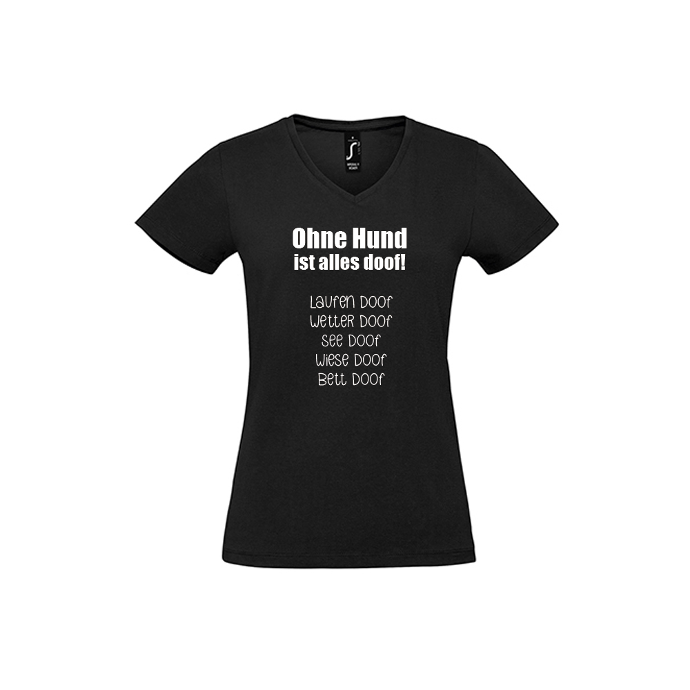 T-Shirt mit dem Motiv „alles doof“ auf der Vorderseite wie abgebildet.